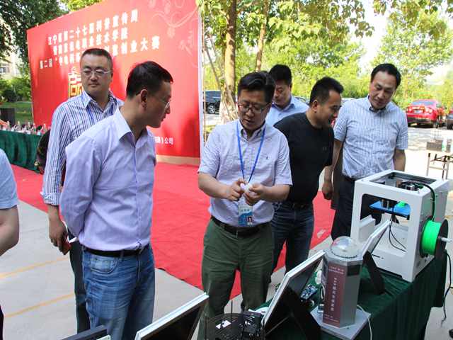 麒麟街道组织部张国顺部长发表讲话,他引用李克强总理在全国首届职业教育周上的重要批示“加快发展现代职业教育,发挥我国巨大的人力优势,促进大众创业、万众创新的战略之举”。赞扬学院以理论教学为基础,以三创活动为驱动,以培养学以致用的高素质人才为目的,是符合当前国家弘扬劳动光荣、技能宝贵;崇尚一技之长、不唯学历凭能力的时代精神。为使科普宣传与创新大赛同步进行,产生同频的共振和叠加的效应,他希望一要整合资源、创建平台,学院要不断探索创新创意新模式,引导学生树立正确的创业观念,为社会培养更多的创造性人才;二要强化服务、做好保障,街道、区县等地方政府要加强与学院对接活动,提供创新创意创业平台;三要学用结合、提升素质,在校学生要将知识的储备与成果的转化相结合,在实践中勇于探索、挑战,提升社会的生存技能。