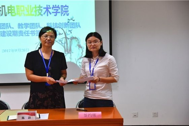 会上,陈赵副院长宣读了《关于批准建设首批院级专业核心团队的决定》和《关于批准建设首批科技创新团队、教学团队的决定》,并与各团队负责人签订了建设期责任书。“先进制造”专业核心团队负责人陆晨芳老师及“中央北路69号”科技创新团队负责人王国珍老师作为负责人代表作了发言,均表示要以此次责任书签字仪式为契机,化责任为动力,把自己的团队建设成一支专业建设经验丰富、教学能力过硬、科研能力与社会服务能力较强,具有一定创新能力的队伍。