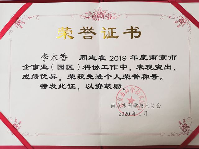 2020年1月3日,南京市科协十届四次全委(扩大)会议在南京科技馆召开,会上举行了首批“南京市企事业(园区)科技工作者之家示范基地”授牌仪式。学院科协作为南京市唯一一家高校科协、全市四家科协之一获得“南京市企事业(园区)科技工作之家2019-2024年综合类示范基地”,学院副院长刁爱军代表学院接受了铜牌。同时,学院科协被评为2019年度市级企事业(园区)科协工作先进集体,学院科协秘书长李木香被评为2019年度市级企事业(园区)科协工作先进个人。