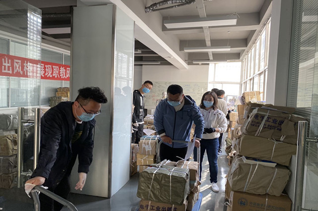 4月15日起,原本存放教材的教学楼一楼变成了教材配送第一站“发货区”,老师们负责以班级为单位进行教材的核对、打包、发货。负责分拣和发货的老师们,把每一位同学都视为VVVIP,定制的教材袋标签,多次核对学生信息、宿舍、教材。每一位同学的教材都用塑料袋进行单独包装,包装袋上的标签是老师们事先核对宿舍信息后手工填写的,每一份教材可都是独家定制版哦!