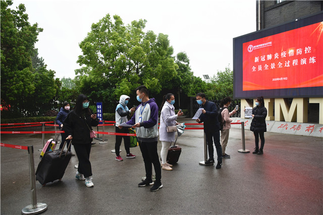 此次演练涵盖了学生报到、宿舍日常管理、网课直播授课、体育课授课、实训室授课、师生就餐、集中医学观察点7个场景及场景中可能发生的异常情况,全景模拟了学生返校后的日常生活、学习全过程。