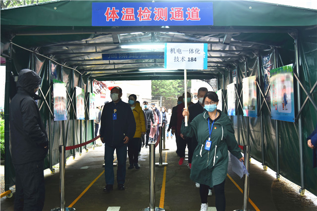 演练过程中,院领导分赴各自负责报到点现场全程观摩指导,学院疫情防控各专项工作组负责人及有关职能部门负责人、教职工志愿者等共同参加演练。院领导要求各相关职能部门和各系部要通过演练及时发现问题,细致排查各个环节可能出现的漏洞,进一步完善学生返校方案和应急预案,切实提高疫情防控和突发状况的应急处置能力,科学有序地推进学生返校前的各项准备工作,为学生平安返校保驾护航。