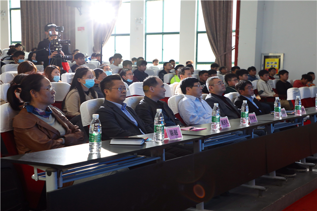 活动最后,大国工匠王曙群先生带来精彩讲座。王先生结合亲身经历与同学们分享了大国工匠的养成之路。他认为学生在未来的发展道路上需要重视以下四个方面。首先,在工作岗位上要具备职业精神,对自己的工作要有高度的认同感,这样才能持之以恒地坚守在自己的岗位上;其次,每个人的职业生涯很漫长,王先生结合现实的案例提醒同学们要不断刷新自己的观念,让自己的观念和时代的发展处于一个同频共振的状态;再次,要不断赋予自己新的能量,通过不断学习,不断打破自己的瓶颈,努力让自己成为这个社会不可或缺的人才;最后,王先生勉励同学们不断创新,要以科学家的思维方式来思考自己的工作岗位。全场师生对王先生的精彩发言报以热烈的掌声。
