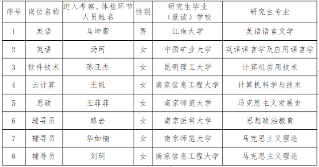 根据《乐玩体育2020年度教师及辅导员补充招聘公告》,经过资格审查和考核等环节,并经学院公开招聘领导小组和党委会研究,现将各招聘岗位进入考察、体检环节的人员名单予以公告。