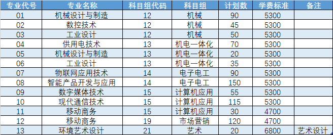 我校2021年对口单招第二批次专业计划