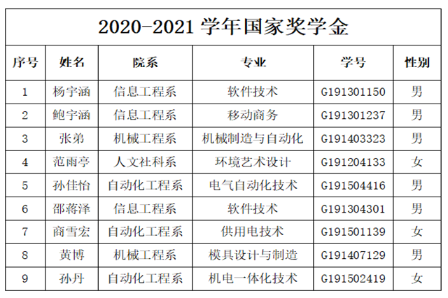 根据《教育部财政部关于印发<本专科生国家奖学金评审办法>的通知》(教财函〔2019〕105号)以及《江苏省学生资助资金管理办法》《江苏省学生资助管理实施细则》《省教育厅关于做好2021年普通高校国家奖学金有关工作的通知》苏教助函〔2021〕12号文的相关精神。我院积极组织召开国家奖学金评审工作,前期各系部通过召开系部国家奖学金评审小组会议,认真贯彻落实国家奖学金评定要求,本着公开、公正、公平的原则,经学生个人申报,班级评议通过,上报系部评议小组,经系部评议审核通过,公示完毕。正式上报学院大学生资助管理中心,经学院大学生资助管理中心复审,召开学院2020-2021学年国家奖学金评审会,拟确定9位同学为乐玩体育2020-2021学年国家奖学金获得者。
