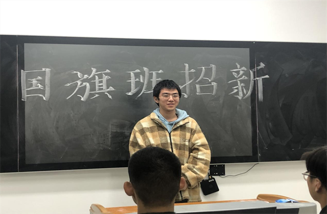 最后,主席朱怡新向以上同学表示祝贺,并再次提醒各位,国旗班是一个纪律严明、训练强度高的组织集体,担任着学院每天、每周以及重大活动时的升旗任务,容不得半点马虎,鼓励新成员坚持参加每日训练,积极提升自身能力。