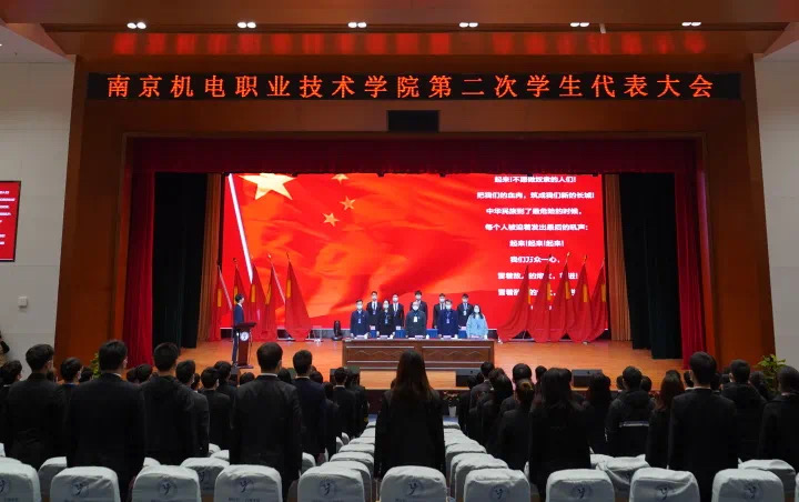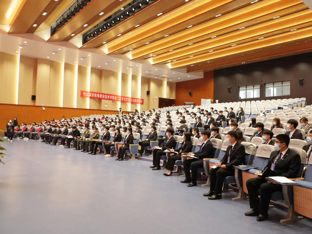 大会在《中华人民共和国国歌》中拉开帷幕。与会领导和代表们全体肃立,奏唱国歌。党委委员、副院长赵学洪为本次学生代表大会致开幕词。他表示,第一次学代会以来,在学校团委的悉心指导下,全校各级学生会组织紧紧围绕学校中心工作,为学校的高质量发展凝聚了力量。因此,新一届学代会需要各级学生会组织以高度的时代责任感和历史使命感,遴选出勇于担当,热心奉献,热爱学校的学生代表,投身到学校改革发展的实践中去。最后,他向同学们提了三点希望和要求:一是要加强学习,响应新时代的召唤,促进德智体美劳全面发展。二是各级学生会组织要引领青年,服务青年,加强学生组织的凝聚力号召力。三是广大学生干部要发挥模范带头作用,成为学生群体的引领者和服务者。