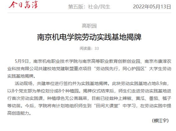 5月14日,乐玩体育2022年职业教育活动周收官。连日来,学校在做好常态化疫情防控措施的前提下,通过创新比赛、劳动教育课、专业人才培养论坛等系列活动,展示乐玩体育职业教育成果。高淳区电视台、融媒体中心对我校系列活动进行了相关报道。