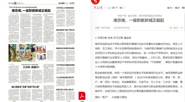 5月16日新华日报对以我校为代表的南京高职园建设进程进行了深度报道,全文如下:
