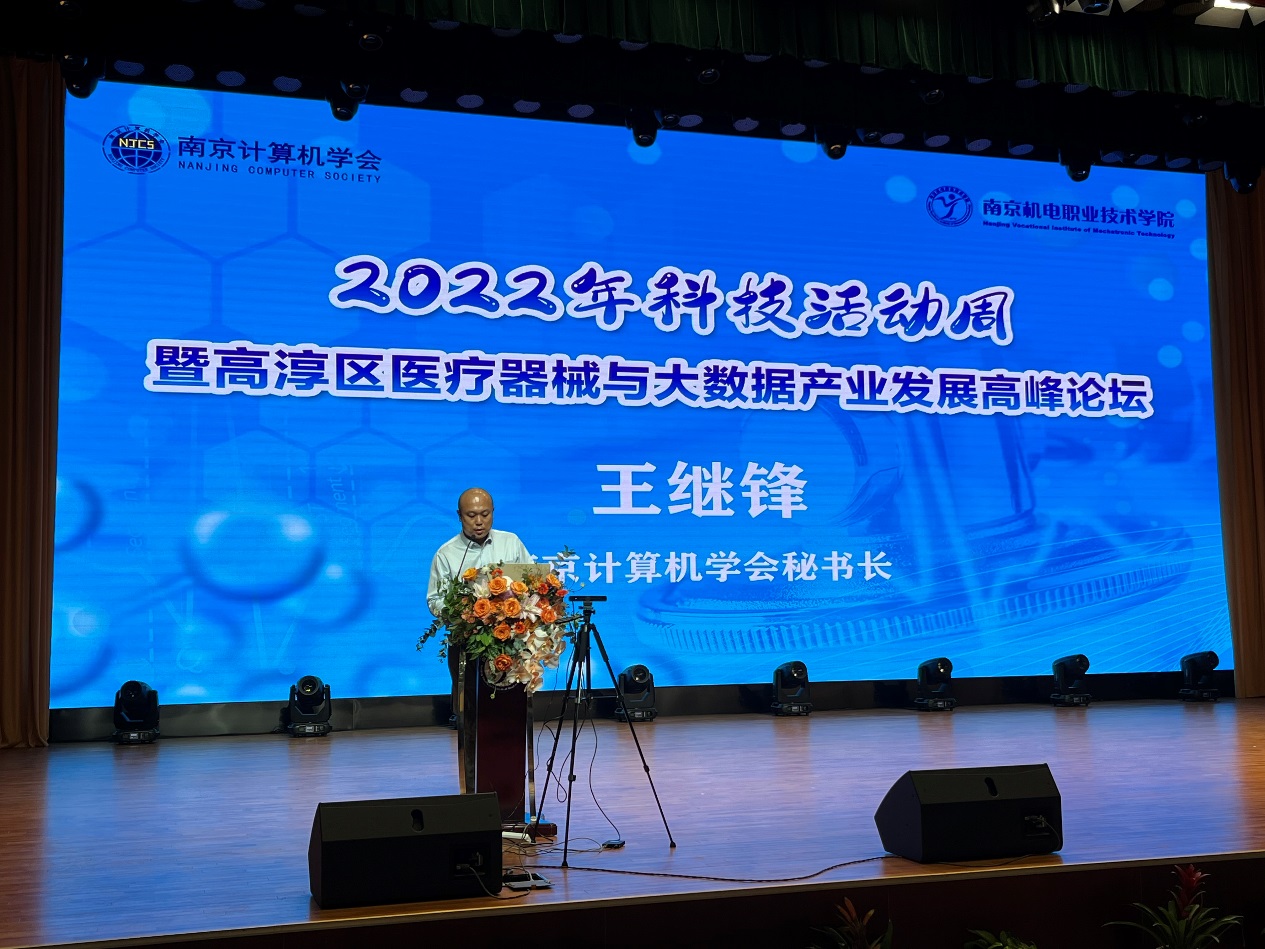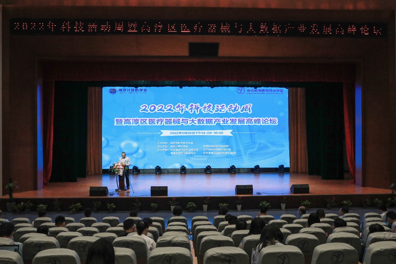 本次活动由南京市科学技术协会举办,南京计算机学会和乐玩体育承办,江苏省生物医学工程学会、江苏医疗器械大数据中心、高淳区医药大数据中心和南京高等职业教育创新创业园协办。江苏省科学技术协会党组成员、副主席李千目,南京市科学技术协会一级调研员虞永才,高淳区人民政府副区长刘敏,南京高等职业教育创新创业园副主任孙爱国,高淳区科协技术协会副主席杨腊斌,江苏省生物医学工程学会常务副理事长王俊、秘书长吕华,南京计算机学会秘书长王继锋,乐玩体育党委副书记、副院长陈赵等领导出席活动。高淳区相关部门以及高职园、相关部门负责人、行业协会、机电学院师生代表共350人听取论坛报告。本次活动采用线下会议与视频直播相结合的形式,活动由乐玩体育党委委员、副院长刁爱军主持。