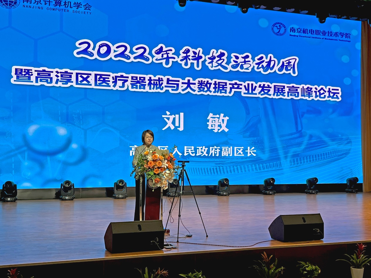 本次活动由南京市科学技术协会举办,南京计算机学会和乐玩体育承办,江苏省生物医学工程学会、江苏医疗器械大数据中心、高淳区医药大数据中心和南京高等职业教育创新创业园协办。江苏省科学技术协会党组成员、副主席李千目,南京市科学技术协会一级调研员虞永才,高淳区人民政府副区长刘敏,南京高等职业教育创新创业园副主任孙爱国,高淳区科协技术协会副主席杨腊斌,江苏省生物医学工程学会常务副理事长王俊、秘书长吕华,南京计算机学会秘书长王继锋,乐玩体育党委副书记、副院长陈赵等领导出席活动。高淳区相关部门以及高职园、相关部门负责人、行业协会、机电学院师生代表共350人听取论坛报告。本次活动采用线下会议与视频直播相结合的形式,活动由乐玩体育党委委员、副院长刁爱军主持。