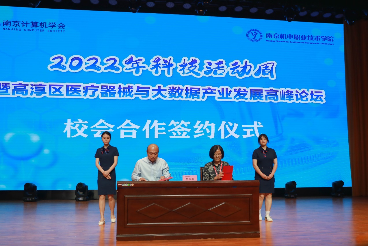 本次活动由南京市科学技术协会举办,南京计算机学会和乐玩体育承办,江苏省生物医学工程学会、江苏医疗器械大数据中心、高淳区医药大数据中心和南京高等职业教育创新创业园协办。江苏省科学技术协会党组成员、副主席李千目,南京市科学技术协会一级调研员虞永才,高淳区人民政府副区长刘敏,南京高等职业教育创新创业园副主任孙爱国,高淳区科学技术协会副主席杨腊斌,江苏省生物医学工程学会常务副理事长王俊、秘书长吕华,南京计算机学会秘书长王继锋,乐玩体育党委副书记、副院长陈赵等领导出席活动。高淳区相关部门以及高职园、相关部门负责人、行业协会、机电学院师生代表共350人听取论坛报告。本次活动采用线下会议与视频直播相结合的形式,活动由乐玩体育党委委员、副院长刁爱军主持。