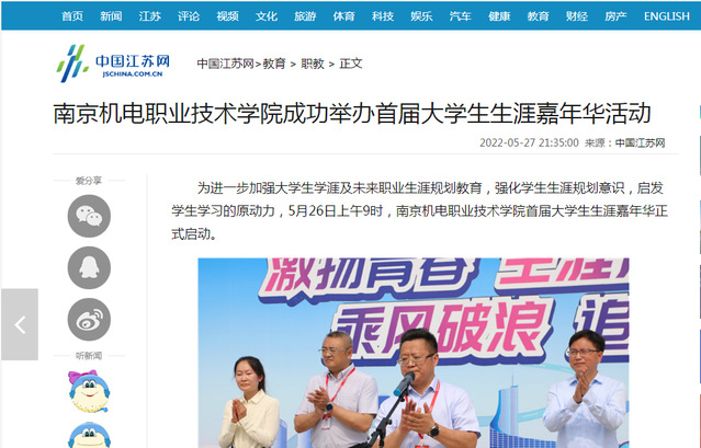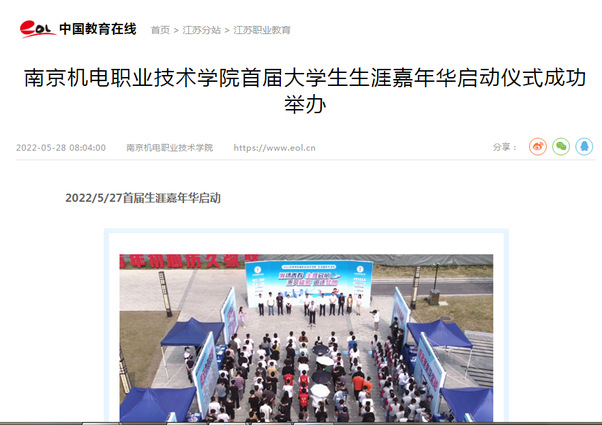 5月27-29日,乐玩体育2022年生涯嘉年华活动顺利举行。学校在做好常态化疫情防控措施的前提下,通过校园招聘会、企业参观实践、校友故事等就业指导活动,展示乐玩体育职业规划、就业指导的成效。中国江苏网、中国教育在线、我苏网、融媒体中心对我校嘉年华活动进行了相关报道。