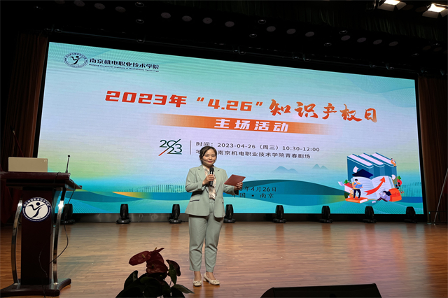 4月26日上午,一年一度的“4 ▪ 26”知识产权日主场活动在学校青春剧场如期举行。南京市知识产权保护中心副主任程秀才、高淳区市场监管局(知识产权局)二级高级主办、党委委员王双虎、南京苏高专利商标事务所专利代理师刘红阳、学校党委副书记、纪委书记、副院长陈赵等领导出席本次活动,学校各系部领导、全体教师及学生代表参加活动。