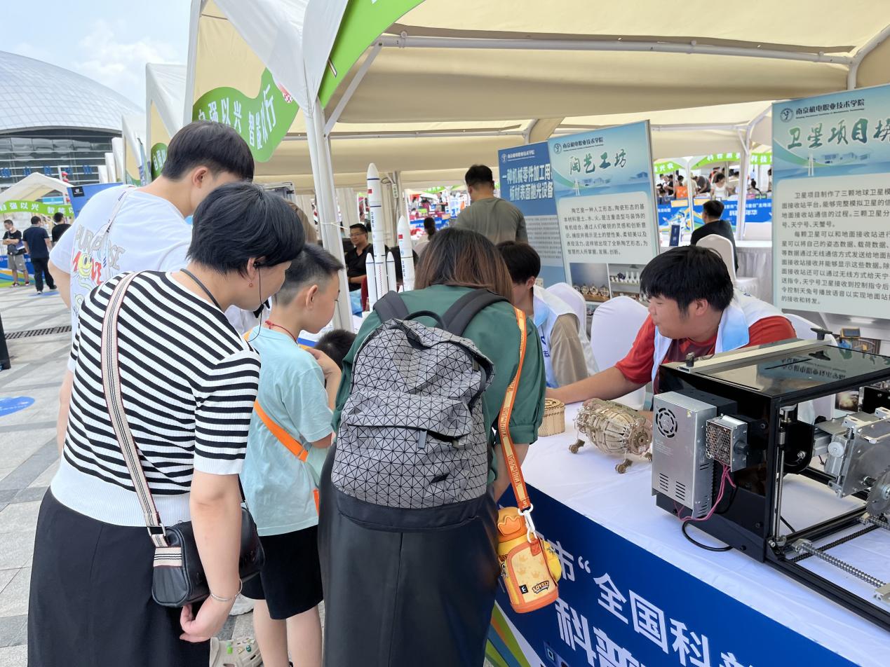 在南京科普嘉年华活动现场,学校科协带来了学校师生的创客作品,兼具创意与美观,引来不少市民驻足观看。我校展位人头攒动、络绎不绝,科技志愿者耐心且流畅地向小朋友们讲解创客作品的设计思路与工作原理,彰显了我校“有爱、有趣、有情怀”的创客校园文化。