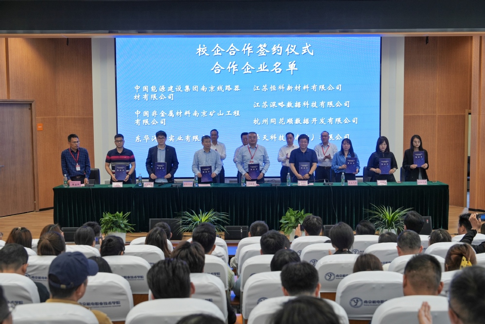 学校在乐学楼报告厅召开了校企见面会。学校党委书记、校长周庆礼表示,希望通过见面会共同探讨校企合作的新模式、新路径,推动产学研深度融合,实现互利共赢。党委副书记、副校长赵学洪表示,我们热切期望用人单位能慧眼识才,为学生实习就业提供更多的岗位,让企业和学生实现“双向奔赴”。会上,南京市高淳区人力资源和社会保障局局长臧恩阁和南京高等职业教育创新创业园管理委员会副主任汪春荣相继发言。学校党委委员、副校长刁爱军现场与中国能源建设集团南京线路器材有限公司、中国非金属材料南京矿山工程有限公司、江苏恒科新材料有限公司、江苏深略数据科技有限公司、南京中际机械制造科技有限公司、南京慧算账财务咨询有限公司(高淳分公司)等13家企业签订了校企合作协议。