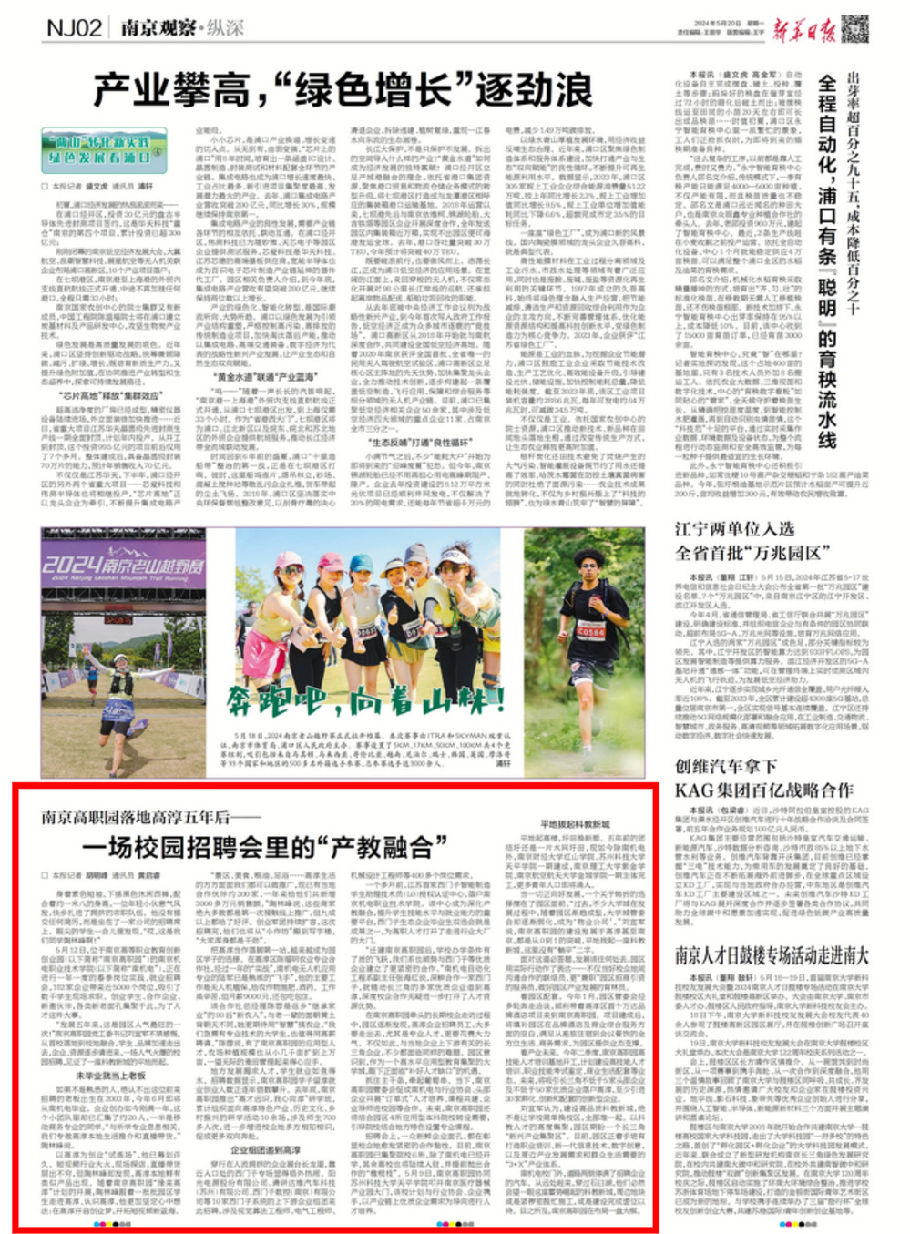 近日,新华日报报道我校在一场校园招聘会里的“产教融合”,全文如下: