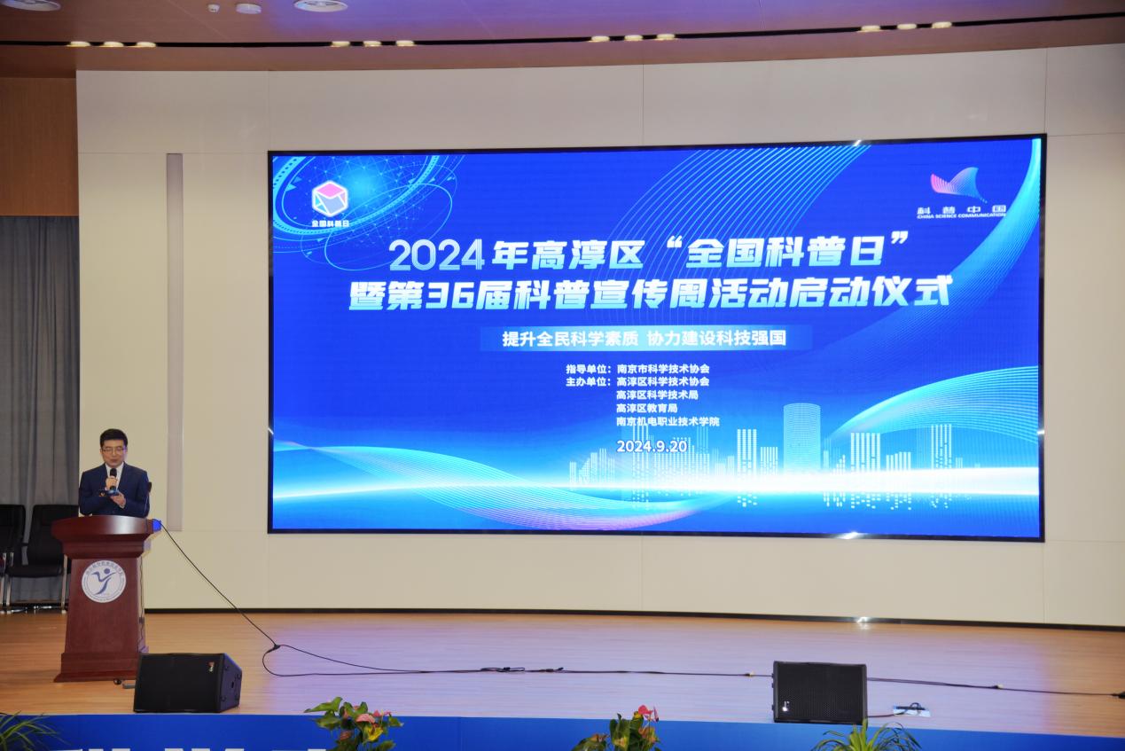 9月20日上午,2024年高淳区“全国科普日”暨高淳区第36届科普宣传周活动启动仪式在乐玩体育乐学楼报告厅顺利举办。南京市科学技术协会副主席顾元刚,高淳区委常委、宣传部部长、统战部部长刘敏,玄武区科技局局长、科协主席沈超,东南大学教授任祖平,高淳区科技局局长、科协主席马启顺,区教育局副局长史联盟,科技局副局长李福洋,区科协副主席杨腊斌,南京财经大学红山学院副院长王晓庆,南京固城湖旅游度假区运营管理有限公司总经理吴宝松, 乐玩体育党委书记、校长周庆礼,党委委员、副校长刁爱军等领导出席本次活动。高淳区科技教师、南师附中学生及乐玩体育师生等400余代表参加本次活动。