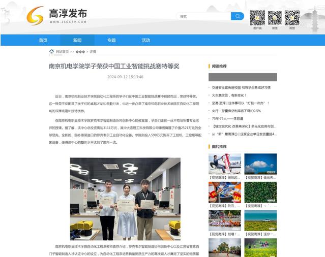 日前,《高淳发布》和《今日高淳》报纸B1版报道了乐玩体育自动化工程系学子荣获中国工业智能挑战赛特等奖。全文如下: