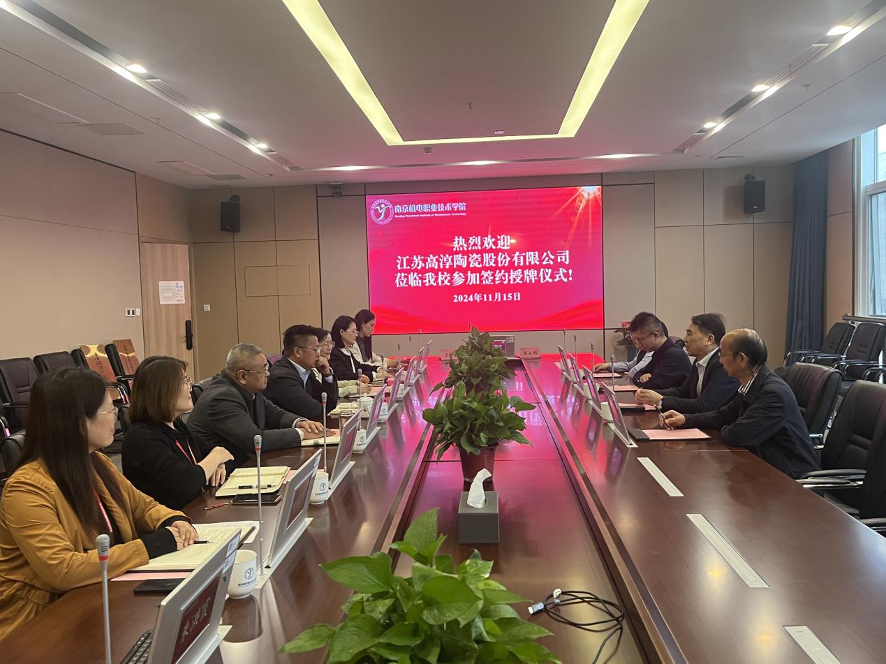 2024年11月15日上午,乐玩体育与江苏高淳陶瓷股份有限公司举行了校企合作签约授牌仪式。江苏高淳陶瓷股份有限公司党委副书记周玉明,设计总监兰亭,产品发展中心经理庄志诚,人力资源部专员许燕,学校党委书记、校长周庆礼,党委委员、副校长刁爱军,科研及校企合作处处长李木香,人文社科系主任曹安林,人文社科系书记叶绘,人文社科系副主任啜春红,视觉传达设计专业负责人张萌出席本次活动。本次签约授牌仪式标志着双方正式建立校企合作战略关系,共同打造命运共同体,形成常态化的校企合作运行机制。