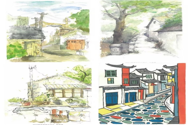 最后,备受期待的“水美乡村新画卷——新年画展”拉开序幕。此次画展作品为乐玩体育人文社科系视觉传达设计专业学子们在高淳区阳江镇潦田村东角庙开展写生的实践成果,参展作品84幅,有风景水彩、风景速写、风景创意装饰画等。他们怀着对阳江镇的热爱之情,深入小镇的每个角落,用敏锐的观察力与细腻的笔触,将阳江镇潦田村的一草一木、一砖一瓦、一人一景生动地呈现在画布之上。