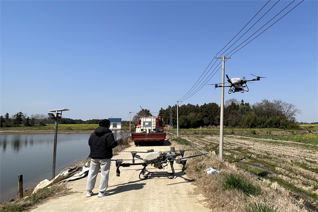 会后,与会人员实地参观了陈福明谷物种植家庭农场,现场观摩了乐玩体育学生操控无人机进行施肥作业。学生们熟练的操作技能和无人机高效精准的作业效果得到了在场人员的一致好评,充分展现了学校在无人机技术应用领域的教学成果和人才培养质量。
