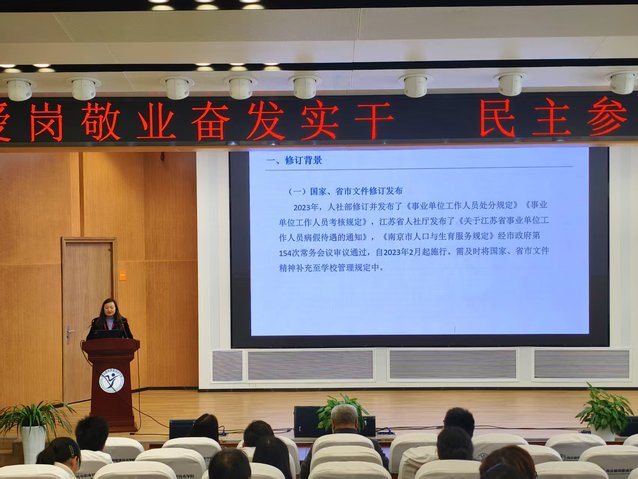 会议聚焦审议《乐玩体育教职工考勤及请假管理办法》,由校党委委员、人事处处长夏玲玲进行详细解读。这一管理办法与每一位教职工的日常工作息息相关,关乎学校教学与管理秩序的稳定。在解读过程中,夏玲玲对各项条款的制定背景、目的及具体执行细则进行了深入阐释,让与会代表们对管理办法有了更清晰、全面的认识。