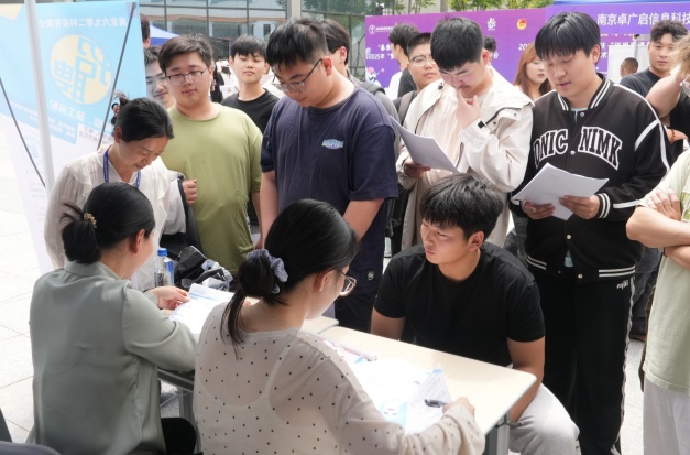 本次招聘会得到了江苏省高校招生就业指导服务中心、高淳区团区委、高淳区人社局以及南京高职园管委会的大力支持。高淳区人力资源和社会保障局更是创新服务模式,送服务进校园,增设了“人社服务”窗口,设立 “人社服务・筑梦启航站”“人社服务・权益护航台”“人社服务・安心保障坊”,为同学们提供就业创业政策、法律法规、社会保障、工伤保险等内容的现场咨询服务,助力同学们更好地了解就业政策和权益保障知识。学校壹生涯工作室也在现场设立了咨询服务台,为同学们提供简历优化、面试辅导等一站式贴心服务。