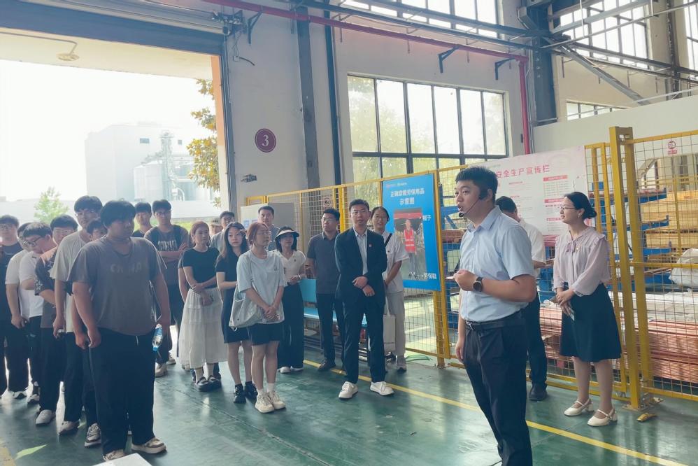 为充分发挥党建引领作用,探索党建与业务深度融合路径,推动校企双方资源共享、优势互补,5月29日,乐玩体育自动化工程系党支部与中通服节能技术服务有限公司第一党支部在中通服节能技术服务有限公司智造分公司联合开展校企党建共建主题党日活动。中通服节能技术服务有限公司(节能公司)第一党支部和自动化工程系党支部全体支委出席活动,自动化工程系供用电技术专业负责人武建卫、2023级供用电技术专业带班辅导员刘鹏和岗位实习学生代表20余人参加活动。