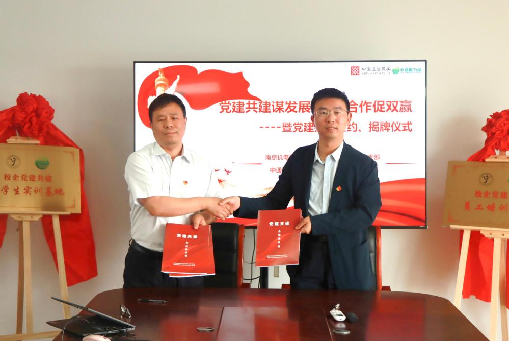 会上,校企双方共同为“校企党建共建大学生实训基地”“校企党建共建员工培训基地”揭牌。