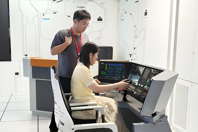 最后,全体参会人员在卫星测控中心中观摩了精密仪器设备与虚拟仿真系统。在黄威老师的细致讲解下,教师们系统了解了卫星信号接收、数据处理等核心技术环节,还近距离观察了各类精密仪器的工作原理与实际应用场景。教师代表亲身体验了长征火箭发射互动模拟项目,沉浸式感受科研实践的独特魅力。现场观摩不仅丰富了教师们的技术认知,更启发大家从实际科研场景中挖掘专利创新点,为后续推动教学与科研深度融合奠定了坚实基础。