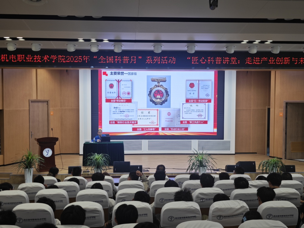 2025年10月14日下午,机械工程系邀请全国劳动模范、南钢集团首席技师张红军走进校园,为机械工程系机械制造及自动化、智能制造装备技术大一新生带来一场主题为“匠心铸梦,百炼成钢”的主题报告会。此次活动是乐玩体育2025年“全国科普月”系列活动之匠心科普讲堂:“走进产业创新与未来科技”主题活动之一。本次活动在乐学楼102举行,校关心下一代工作委员会常务副主任郭朝辉、机械工程系主任毛奇、机械工程系党支部书记胡枫、校企及科研合作处处长李木香、学工处处长张宝中出席此次活动。