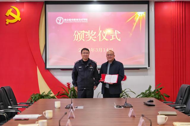 3月14日上午,南京市公安局内保支队副支队长张研来校颁奖并对我校安全稳定工作进行指导。