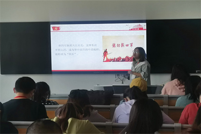 赵姗姗老师以《新四军纪律建设》为主题。带领全体教职工从“新四军铁的纪律建设的实践经验”“坚守铁的纪律的重要性以及传承铁的纪律”“加强纪律建设”三个方面出发,深入具体地阐述了党的纪律建设的重要意义。
