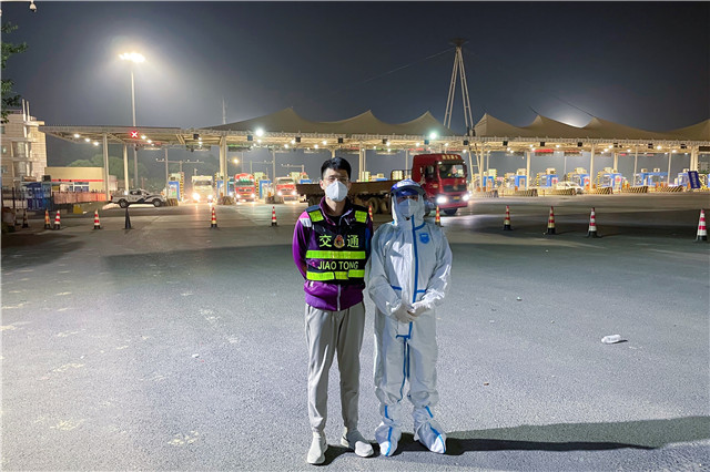 在本次防疫志愿者工作中,两位同志主要负责南京市二桥高速收费卡口的检查,一旦发现有中高风险行程史车辆和人员立即进行闭环引导,协助交警呼叫栖霞防疫。防疫工作时间主要采用三班轮班制度,轮岗时间为7时-15时、 15时-23时、 23时-次日7时。毛奇、薛刚两位同志主要负责引导车辆进行闭环管理,按照相关防疫要求引导车辆行驶至沪宁高速卡口,同时负责在高速卡口查验货车驾驶员及同行人员的健康码、行程码与核酸检测报告等信息,引导需核酸检测人员到指定地点进行核酸检测。