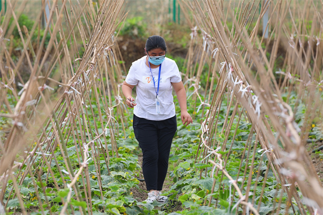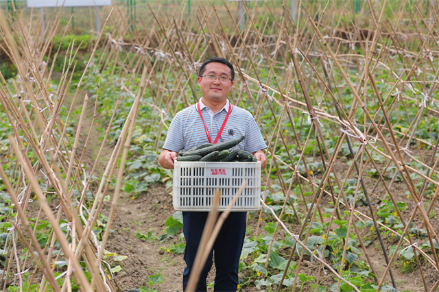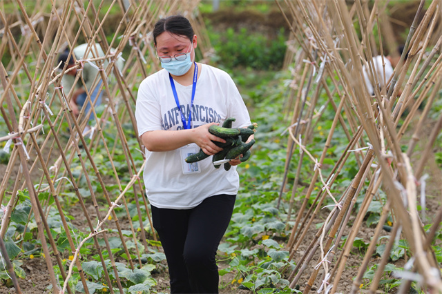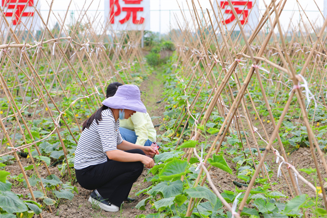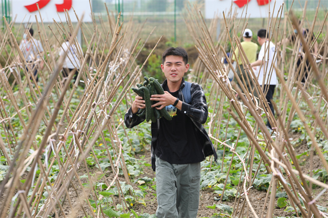 经过一个多月的播种、移苗、定植,此刻,各个支部的田地里蔬果成熟。机关一支部的清风园里一派欢喜忙碌的场景。大片绿油油的黄瓜缠绕在纵横交错的藤架上……师生们手拿劳动器具,在学校劳动实践基地技术指导荀财华老师的指导下,一起采摘。从黄瓜种植技巧到如何引蔓的科普知识,荀老师为现场师生做了详细的讲解。看着满手的泥巴、闻着蔬果的清香、抬着满筐的黄瓜,师生们充满浓浓的劳动的自豪感与成就感。
