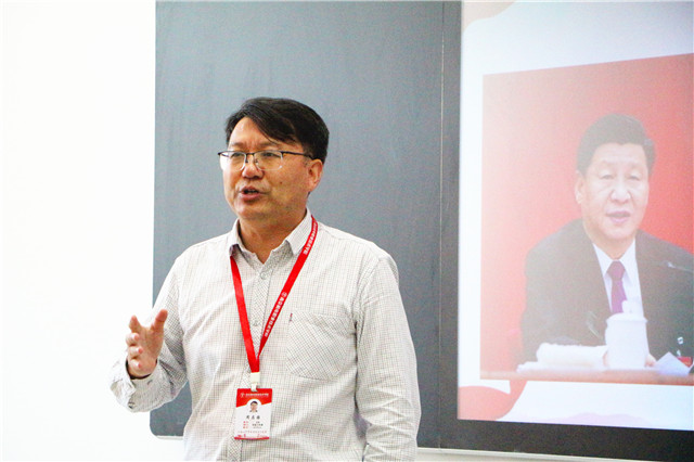 随后,周启国详细解读了十九届四中全会会议召开的目的和主要内容,介绍了十四个坚持和完善的主要内容,针对九个提法十四个关键词要点详细解读,结合案例深入浅出地进行讲解,全体教师聚精会神聆听讲座,收获满满。