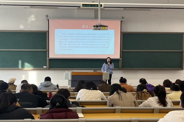 11月28日下午,人文社科系党支部在善学楼102教室组织学习《习近平新时代中国特色社会主义思想的世界观和方法论专题摘编》,本次学习由人文社科系党支部副书记叶绘主持,人文社科系全体教职工参加。