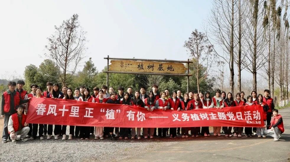 为深入学习贯彻习近平生态文明思想,助力建设人与自然和谐共生的美丽中国,3月12日,机关二支部在高淳水漫城开展“春风十里 正‘植’有你”义务植树主题党日活动。支部全体党员和团学骨干参加活动。