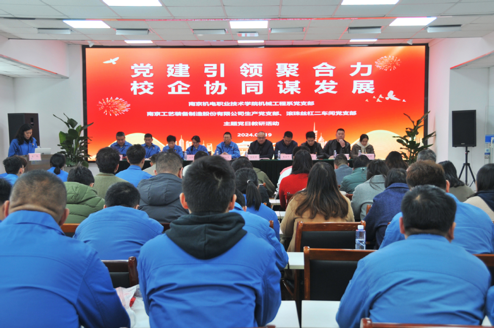 为进一步筑牢校企党建共建平台,纵深推进产学深度融合。2024年3月19日,学校党委副书记、副校长赵学洪带领机械工程系党支部全体教职工与南京工艺装备制造有限公司市场综合党支部、生产党支部、技术党支部、滚珠丝杠二车间党支部在南京工艺装备制造有限公司组织开展了以“党建引领聚合力,校企协同谋发展”的主题党日活动。南京工艺装备制造有限公司党委书记赵如平、纪委书记刘丽丽等出席活动。