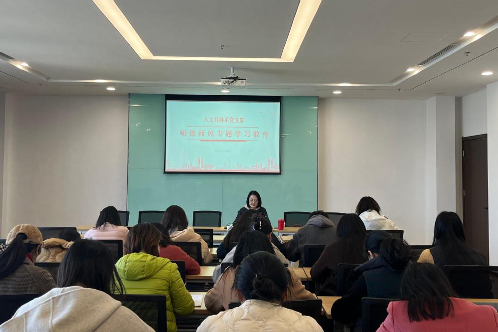为深入学习贯彻党的教育方针,进一步加强师德师风建设,提升教师职业道德素养,11月28日下午,人文社科系党支部在弘德楼西塔702会议室组织开展师德师风专题学习活动。本次学习由人文社科系党支部副书记叶绘主持,人文社科系全体党员参加。