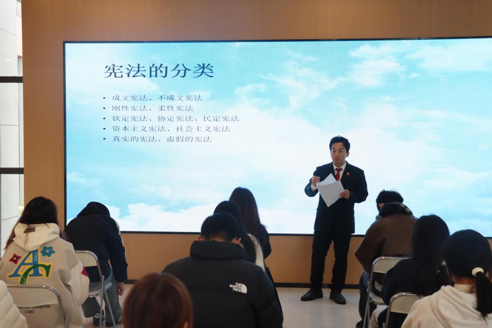 为了迎接12月4日第十一个国家宪法日,加强师生宪法法治教育,乐玩体育信息工程系党支部在弘德楼西塔“一站式”学生社区服务中心举行了一场别开生面的法治讲座。讲座有幸邀请到高淳区人民法院综合办刑庭支部的专业法官前来授课。他们带着对下一代成长的深切关怀,走进校园,为我们带来了一场法律知识的盛宴。