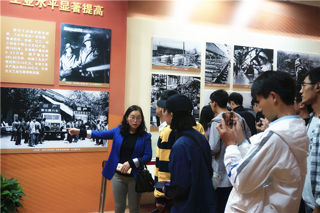 为保障活动有序进行,加强现场互动,系部为每10位学生安排了2名教师负责现场讲解。本次成就展总面积达1.2万平方米,分设综合展、地方展和室外展3个展区,运用场馆展览、网上展览、挂图展示等形式,展出图片(图表)2000多张,实物、模型、沙盘100多件(套),视频及多媒体展品100多件(套),展列228个先进典型和英雄模范人物(集体)。全面展示了新中国成立70年来党领导江苏人民进行建设、改革和发展的伟大历程、巨大成就和宝贵经验,突出展示党的十八大以来全省上下贯彻落实习近平总书记关于江苏工作重要指示精神,着力推动“五个迈上新台阶”,特别是推动高质量发展走在前列、建设“强富美高”新江苏的巨大成就。