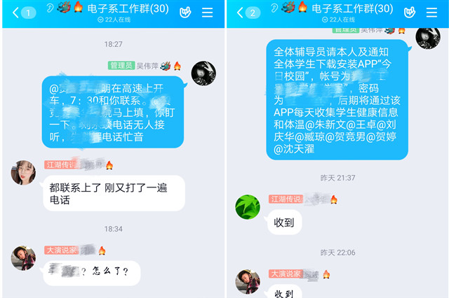 疫情期间工作的开展绝对不能简单的只注重结果,整个防疫过程中学生主体的活动范围、思维方式和心理状态都是变化的,要求全体学工团队动态地关注学生。为此吴书记每天不定时的收集学院官网、微信公众号等平台的疫情防控信息,并通过辅导员和学生干部及时做好传达引导工作。
