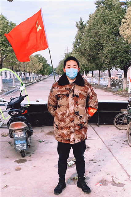 随着疫情的迅速扩散,1月底,各个地区都启动了公共卫生事件一级响应,谢志鑫所在的和县力阳镇也积极响应,采取了对小区进行封闭式管理和道路进行强化过往管控等措施来防止疫情传播。由于和县乡村道路数量多,小区分布点位散,单靠政府工作人员值守远远不够,急需大量志愿服务人员。放假在家的谢志鑫得知此消息,第一时间请战投身疫情阻击战。谢志鑫被安排在路口执勤点进行登记劝阻工作。除了做好登记提醒和劝阻工作外,谢志鑫还会帮助执勤点做消毒和宣传推广的工作。有的时候,他会为附近的居民运输蔬菜,想方设法做一些自己力所能及的事情。