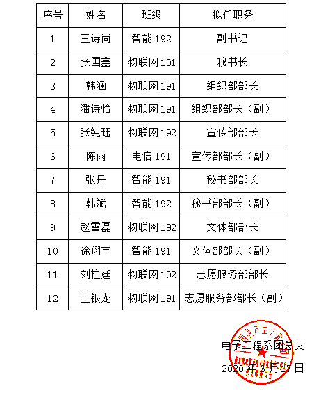 电子工程系第16届团总支换届结果公示