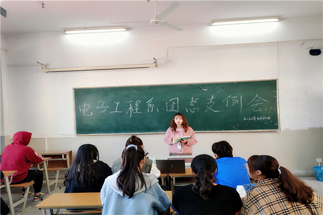 此次会议由书记林雪主持,会议伊始,林书记对20级新干事的到来表示了欢迎,望团总支在“新血液”的加入后可以蒸蒸日上。其次,她详细地阐述了团总支下辖五个部门的职能,通过她详细的讲解,全体干事对团总支有了更为深刻的认识。紧接着,团总支副书记、秘书长以及各位部长依次上台做自我介绍,以促进各部门之间、部长与干事之间的互相了解。最后,林书记对团总支近期的重要工作进行了部署,要求团总支全体成员积极发挥作用,保质保量完成团学工作。