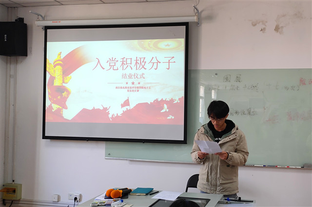 12月15日,电子工程系党支部在博学楼307举行了2019级入党积极分子培训班(初级班)结业仪式。此次结业仪式由电子工程系党支部组织委员李俊娇主持,2019级全体入党积极分子及电子系全体党员参加。