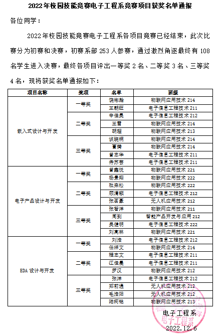 2022年校园技能竞赛电子工程系竞赛项目获奖名单通报